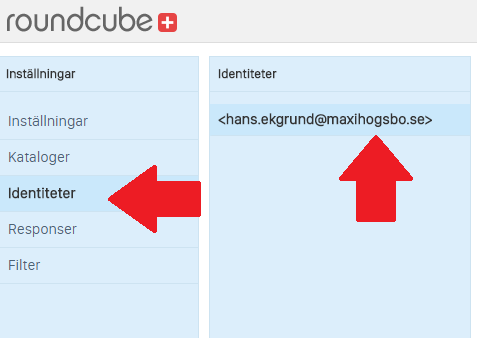 Därefter väljer du Identiteter i menyn till vänster och sedan din mejladress i nästa meny.