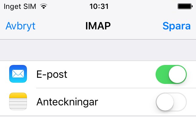Lägg till nytt konto i mejlprogrammet (IMAP).