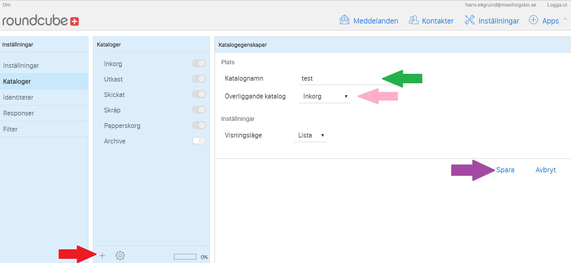 Klicka på plustecknet för att lägga till ny katalog (röd pil)