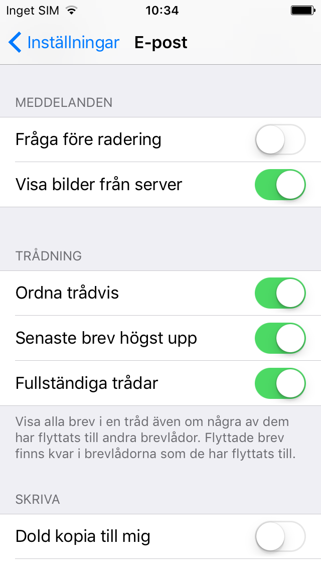 t.ex. iPhone trådar meddelanden i grundinställningarna.